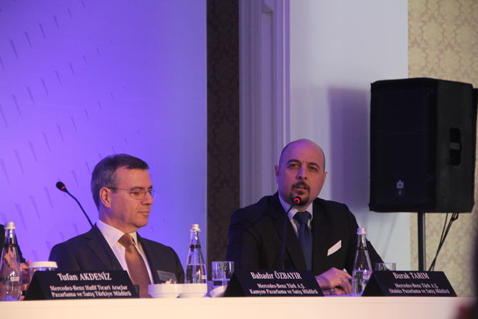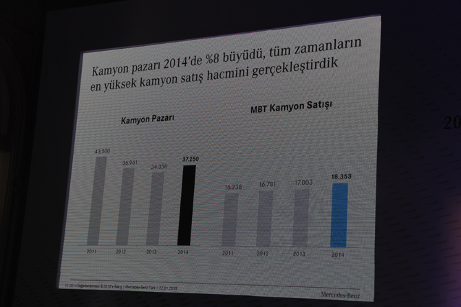 Mercedes Benz Hafif Ticari Araç Pazarlama ve Satış Türkiye Müdürü Tufan Akdeniz : “ Rekabet ettiğimiz alanda Pazar stabildir genellikle.Küçük dediğimiz sınıfta yüzde 30 daralma oldu.Müşterilerimizden aldığımız geri dönüşler sonucunda vergilendirme ve belgelendirme şartlarından dolayı talebin azaldığını görüyoruz.Buna rağmen yılın son 5 ayında kuvvetli bir talep yaşandı,aynı talebi 2015 içinde bekliyoruz” dedi.