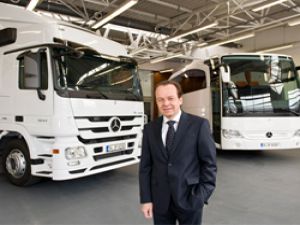 2014 yılının Haziran ayı sonu itibariyle 6 ton üzeri kamyon pazarındaki payımızı geçen yılın aynı dönemine göre önemli ölçüde arttırarak kamyon pazarında 12 yıldır üst üste elde ettiğimiz pazar liderliğini devam ettirdik. İlk altı ayda pazarın geçen yılla aynı seviyelerde gerçekleşmesine rağmen şirketimizin kamyon satışları % 6.7 oranında artış gösterdi. 8.441 adetlik satış gerçekleştirerek faaliyet gösterdiğimiz tüm segmentlerde performansımızı arttırdık ve kendi rekorumuzu kırmaya devam ettik. Mercedes-Benz Türk Aksaray Fabrikası’nda ürettiğimiz geniş Actros, Axor ve Atego serisi ürün gamımızla, 12 tondan 21 tona kadar 4x2 / 6x2 hafif kamyon, 15 tondan 32 tona kadar 6x2 / 8x2 uzun yol nakliye kamyonu, 25 tondan 32 tona kadar 6x2 / 6x4 / 8x4 inşaat kamyonları ve her kullanım alanındaki çekici müşterilerine en üst düzeyde hizmet veriyoruz. Özellikle çekici ve inşaat kamyonlarında Mercedes-Benz kamyonlar filoların birinci tercihi olmaya devam ediyor. Yaygın ve etkin bayi ağı, servis teşkilatı, kuvvetli ikinci el operasyonu ve Mercedes-Benz Finansal Hizmetler aracılığı ile sunduğumuz finansman desteği kullanıcıların markamızı tercihinde önemli rol oynuyor. Bunların yanı sıra, üretim merkezlerimize yaptığımız yatırımların dışında müşteri talep ve beklentileri doğrultusunda, ürünlerimizi geliştirmeye yönelik de yatırımlarımızı sürdürüyoruz. Bu kapsamda geçtiğimiz yılın sonunda Aksaray Kamyon Fabrikası’nda faaliyete geçirdiğimiz yeni üretim holü ile toplam araç montaj alanımızı arttırdık. Yeni yatırımlarımız ile birlikte, ihracat pazarlarındaki konumumuzu güçlendirmenin yanı sıra yurtiçi ve yurtdışı pazarlardaki müşterilerimizin beklentilerine ve özel isteklerine de daha hızlı yanıt verebilecek konuma geldik" dedi. Mercedes-Benz otobüsler 47 yıldır lider