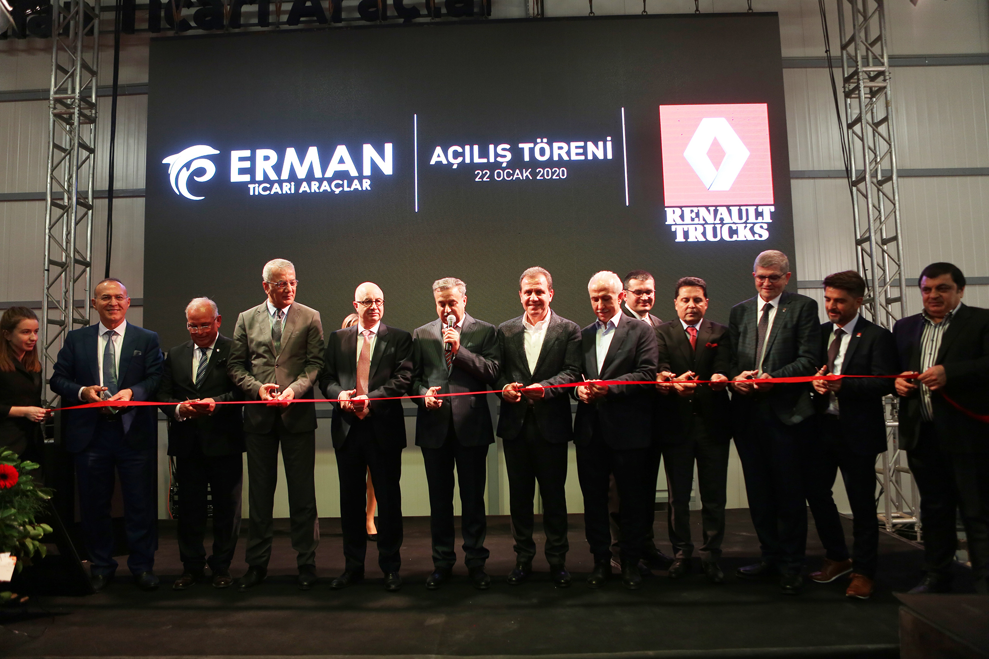 1500 metrekarelik kapalı, 12 bin metrekarelik açık alana sahip tesisin açılış törenine, Mersin Valisi Ali İhsan Su, Büyükşehir Belediye Başkanı Vahap Seçer, Akdeniz Belediye Başkanı M.Mustafa Gültak ve Mezitli Belediye Başkanları Neşet Tarhan, Akdeniz Kaymakamı Muhittin Pamuk ve birçok STK’nın başkanları katıldılar. Erman Grup Yönetim Kurulu Başkanı Mehmet Deniz ve Genel Müdürü Emrah Deniz’in ev sahipliğinde Renault Trucks Dünya Başkanı Bruno Blin, Türkiye Başkanı Sebastien Delepine ve Türkiye Satış Direktörü Ömer Bursalıoğlu’nun bulunduğu açılışa çok sayıda Mersin merkezli lojistik firması ve iş ortakları da katıldı.