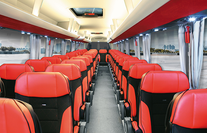 “Uzatılan şasinin sağlamlığı da arttırıldı. Üstelik bu uzunlukta bile Lion’s Coach 23.4 metre dönme çapına sahip. Böylece güvenlikten ve manevra kabiliyetinden taviz vermeden yolcu kapasitesi 2 + 1 koltuk konfigürasyonunda 41’e, 2+2 koltuk konfigürasyonunda ise 55 koltuğa ulaşıyor. Bu kapasite artışı yılda 3.300 ilave yolcu anlamına geliyor. Bu ilave hasılat, aks sayısı arttırılmadan ve yakıt tüketimi korunarak sağlanıyor. Bu da kazanılan ilave hasılatı daha değerli kılıyor.