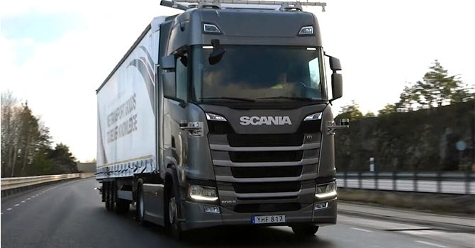 Scania, otonom sürüş projesi kapsamında İsveç'te Södertälje ve Jönköping şehirleri arasındaki E 4 otoyolunda sürücüsüz kamyonları test etme izni aldı.