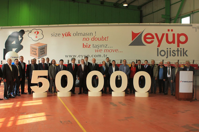 15 Ekim 2014, Istanbul - Tırsan, Adapazarı fabrikasında üretilen 50.000inci semi-treyler aracının teslimatını gerçekleştirdi. Adapazarı fabrikasında düzenlenen törende 50.000inci araç Gaziantep merkezli lojistik hizmeti sağlayıcısı Eyüp Lojistik tarafından teslim alınırken, sektör basının geniş katılımının yanı sıra Tırsan ve DAF bayilerinin katıldığı törende, Tırsan Treyler A.Ş. Yönetim Kurulu Başkanı Çetin Nuhoğlu ve Eyüp Lojistik Yönetim Kurulu Başkanı Eyüp Bartık birer konuşma yaptılar.