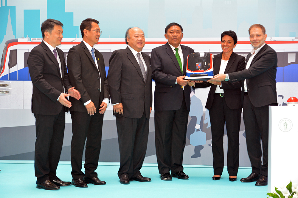 Türkiye’nin ilk metro ihracatı için gerçekleştirilen takdim törenine Bangkok Valisi Aswin Kwanmuang, Bangkok Toplu Taşıma Sistemleri Kamu Hizmetleri Şirketi’nin (BTS) üst düzey yöneticileri ve Siemens Mobility üst düzey yetkilileri katılım gösterdi.
