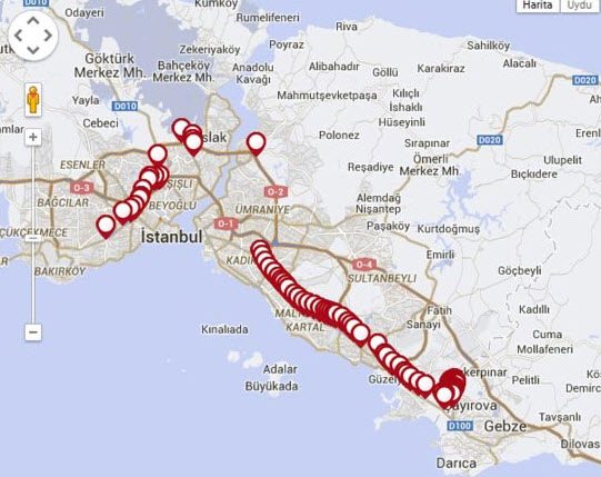 Anadolu yakasındaki Tuzla Şifa Mahallesi’nden yola çıkan 500T otobüsü, 75 durağa uğrayarak ortalama 240 dakika sonra Avrupa yakasındaki Cevizlibağ’a ulaşıyor.