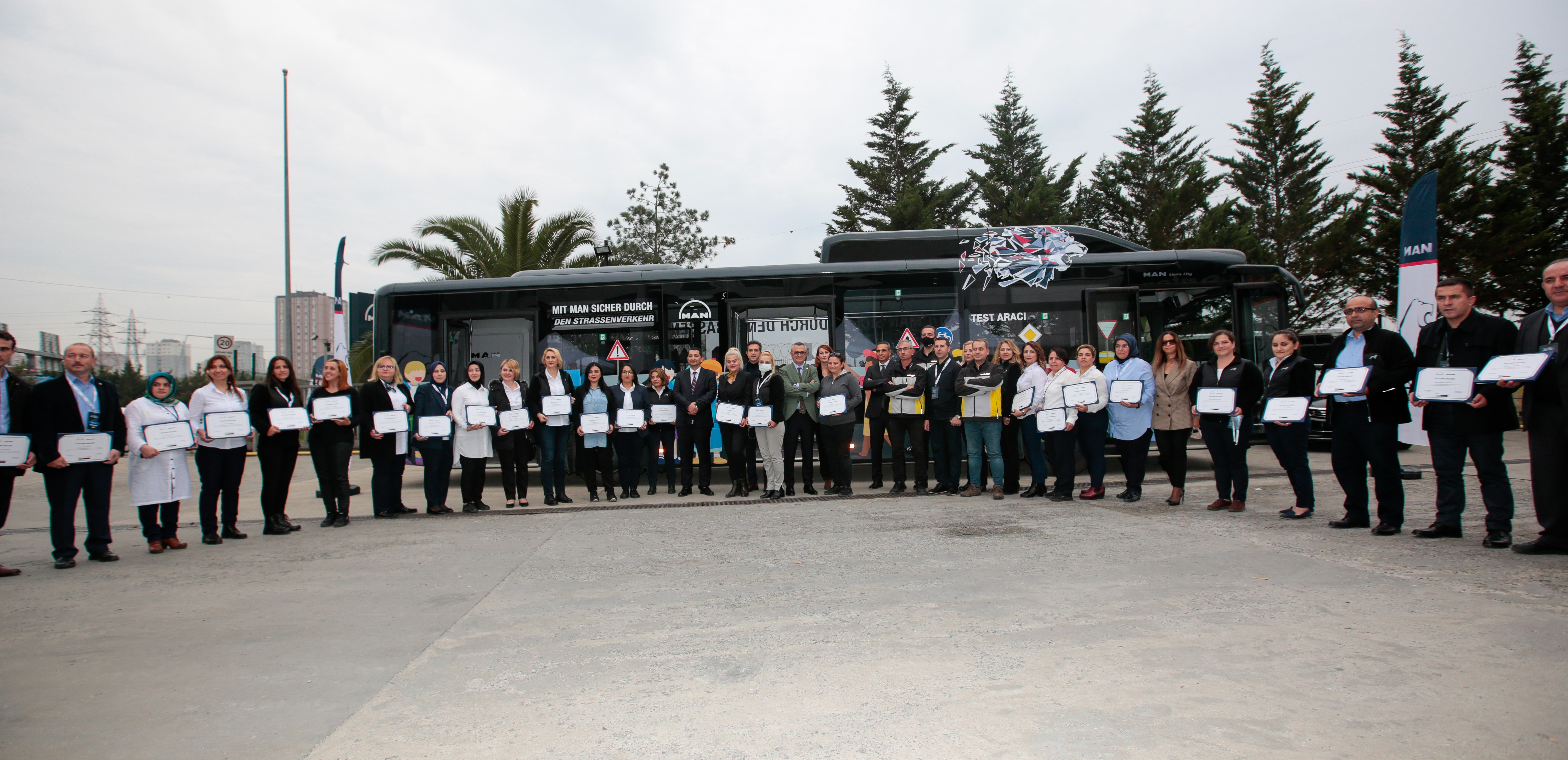 MAN’ın İstanbul İkitelli Tesisleri’nde gerçekleştirilen Güvenli Sürüş ve MAN Lion’s City Efficient Hybrid teknik tanıtım eğitim Töreni’ne, İETT Genel Müdürü Alper Bilgili, Genel Müdür Yardımcısı Murat Altıkardeşler, İnsan Kaynakları ve Eğitim Daire Başkanı Naşit Oskay, Eğitim Müdürü Neslihan İncirci ile MAN Kamyon ve Otobüs Ticaret A.Ş. Genel Müdürü Tuncay Bekiroğlu, Kamu Satış Müdürü Taylan Aslanoğlu, İnsan Kaynakları Müdürü Sezen Çözen İnci ve eğitimde yer alan kadın şoförler katıldı.