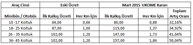 Söz konusu UKOME Kararına istinaden yapılan Alt Komisyon Toplantısı neticesinde, Personel Servis Araçları için aşağıdaki tabloda belirtilen ücretlerin uygulanması uygun görüldü.