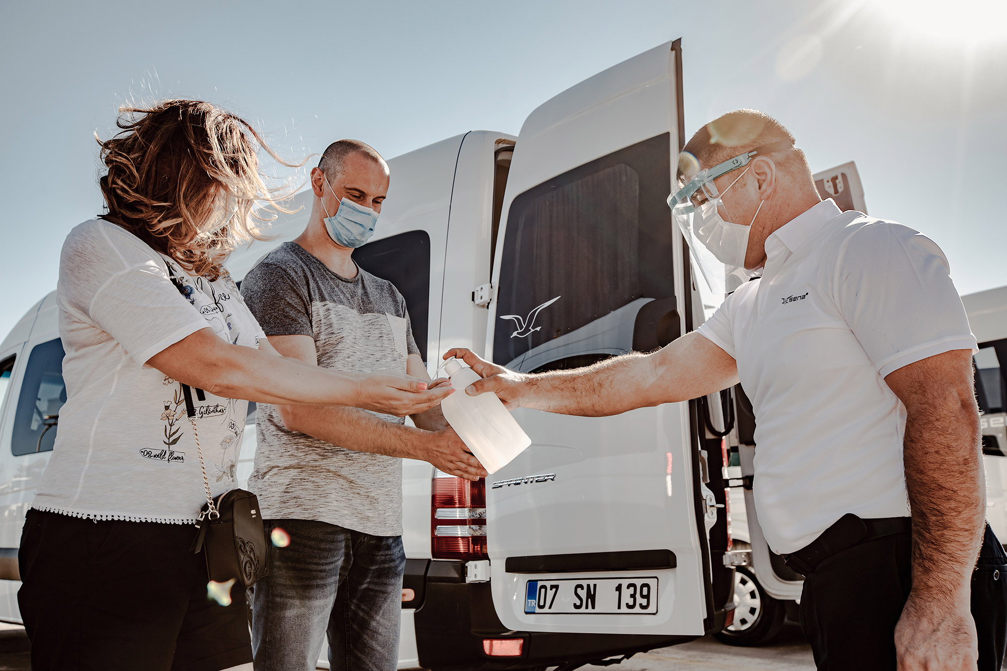 Sosyal mesafe kuralları gereği oturma düzeninin aralıklı olarak yeniden revize edildiği transfer araçlarında, her sefer sonrası azot içerikli dezenfekte işlemlerinin gerçekleştirildiğini açıklayan Necati Çetiner, “Güvenli Turizm Sertifikasyon Programı çerçevesinde, ‘tur ve transfer amaçlı karayolu taşıt işletmelerinde pandemi süresince uygulanacak olan COVID - 19 ve hijyen uygulamaları değerlendirme kriterleri kapsamında gerekli koşulları yerine getirdik. Tüm dünyaca geçerliliği tanınan sertifikanın, COVID - 19 güvenlik kurallarının tam olarak uygulanması sonrası gerçekleştirilen denetim sonucunda verildi. Bu bağlamda araca binmeden önce yolcularımızın ateşlerini ölçüyor, alınan tedbirler hakkında bilgilendiriyoruz. Araçlarımızda görünür noktalarda alınan tedbirler 3 dilde bilgi amaçlı yer alıyor. Biz taşımacılık sektörü içinde araçlarının tamamı için ‘Güvenli Turizm Sertifikası’ alan tek şirket olduk. Yolcularımızın sağlıklı bir şekilde seyahat etmesinden sorumluyuz” dedi.