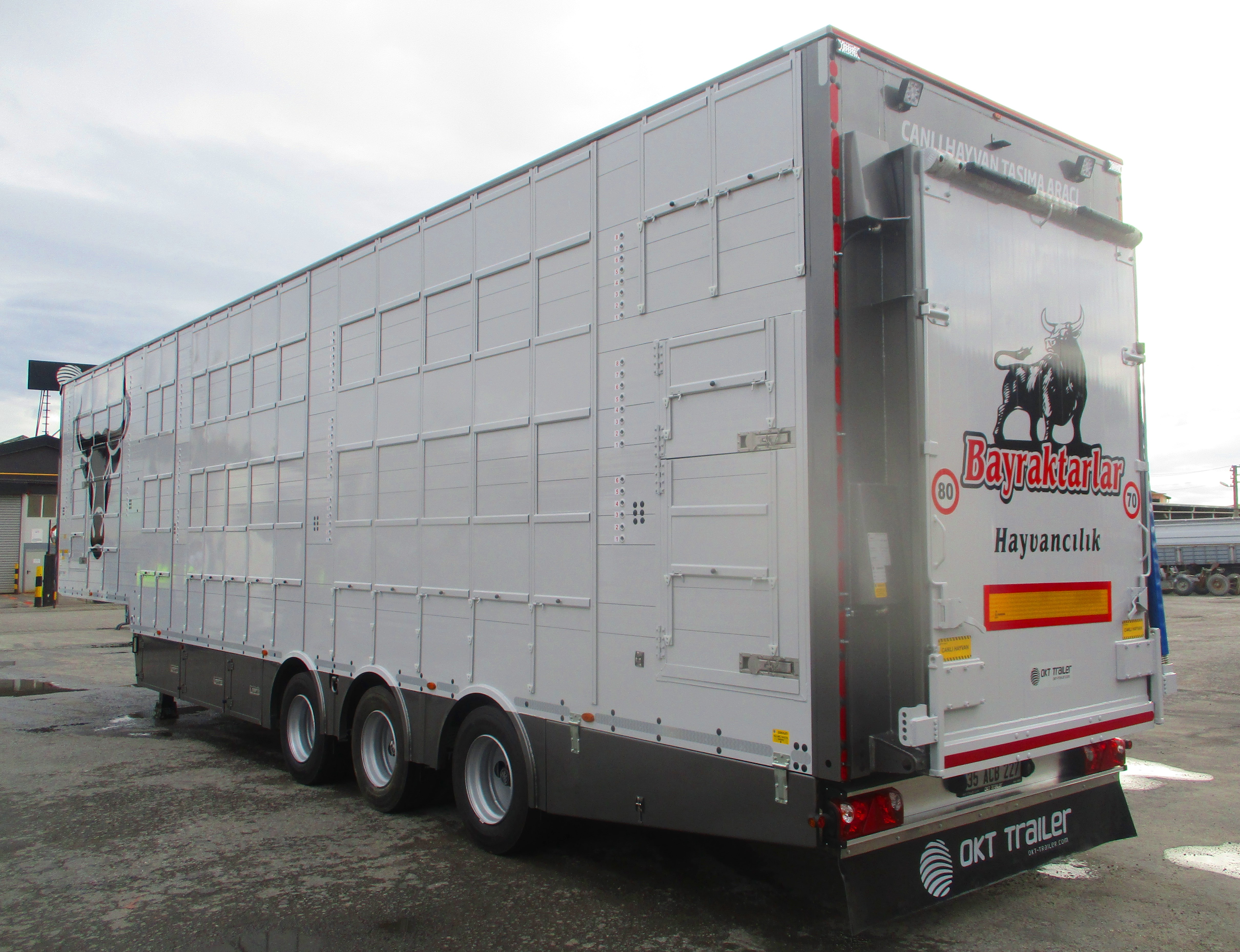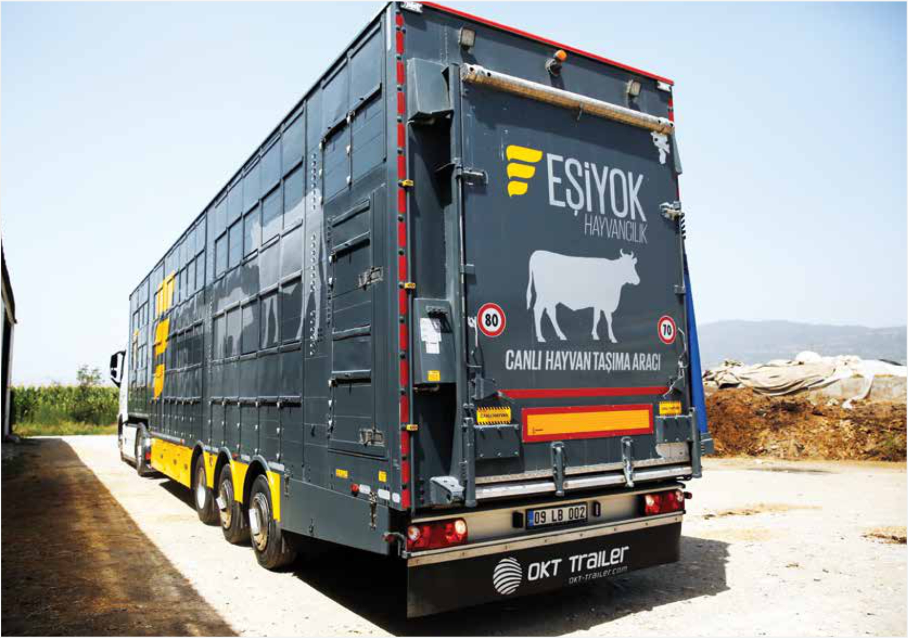 Canlı Hayvan Taşıyıcı Semi Treyler aracı ile hayvanların taşınması sırasında ilgili yasa ve yönetmelikler mevzuatına uygun üretim yaparak sektörünü temsil eden OKT Trailer, geçtiğimiz Kurban Bayramı’nda sıcaktan, havasızlıktan telef olan ve yine doğudan batıya gerçekleştirilen nakiller sırasında zor şartlar altında taşınan hayvanların çektiği eziyetlerin önüne geçiyor. Yaklaşan Kurban Bayramı sebebi ile ülkemizde hayvan nakillerinin arttığı bu günlerde araç teslimatlarına devam eden OKT Trailer, Türkiye’nin hayvancılık sektöründe önde gelen üretici çiftliklerinden Boran Hayvancılık, Meridyen Hayvancılık, Eşiyok Hayvancılık ve son olarak ta geçtiğimiz günlerde Bayraktarlar Hayvancılığa Canlı Hayvan Taşıyıcı Semi Treyler aracı teslim ederek firmaların hayvan taşımacılığında hizmet kalitelerini arttırmalarına ve ekonomik anlamda kazanım elde etmelerine vesile oldu.