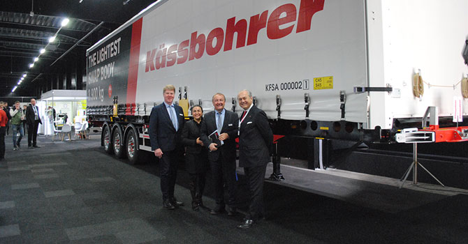 Tırsan’ın ödüllü Ar-Ge merkezi tarafından geliştiren, sektörün en hafif Swap Body aracı K.SWAU CL, fuarda yoğun ilgi gördü. Kara, deniz ve demiryolu taşımalarında en ekonomik geçişi sağlamak için geliştirilen Kässbohrer Perdeli Swap Body aracı, 34 euro palet kapasitesi, 7.2 ton forklift kapasitesi ve 3.900 kg’lık boş ağırlığı ile maksimum verimlilik sağlıyor. K.SWAU CL, daha fazla hız, verimlilik ve kapasite isteyen firmaların ilk tercihi olan intermodal taşımacılığa uygun güçlü şasisi ve maksimum yük kapasitesi sayesinde işletme maliyetlerini minimuma indiriyor.