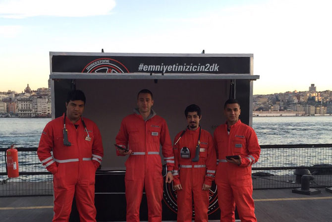 Bridgestone, uzun yolculuklar için sıklıkla tercih edilen İstanbul Yenikapı, Pendik, Sirkeci ve Yalova İDO iskelelerinde #emniyetimiziçin2dk kampanyası kapsamında konumlandırdığı ekipleriyle lastiklerin diş derinliğini ve basınçlarını ölçüyor. Lastik diş derinliği güvenli sınırın altında bulunan araç sahiplerini lastiklerini en kısa zamanda yenilemeleri konusunda uyaran ekipler, hava basıncı düşük olan lastiklere de uygun seviyede hava basımı gerçekleştiriyor.
