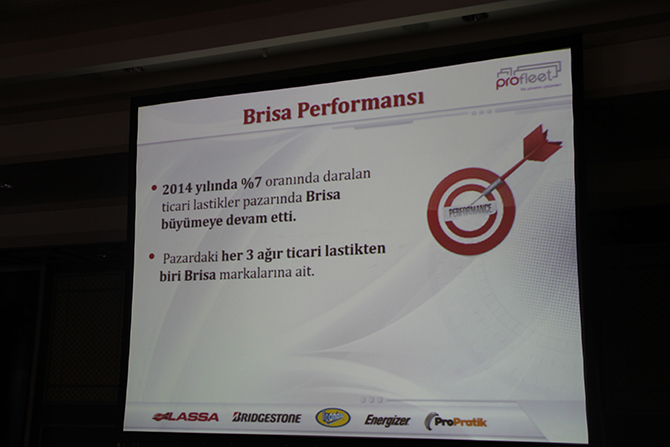 Brisa Genel Müdürü Bayman :"Türkiye’de toplam lastik satış adedi, özellikle binek ve hafif ticari araç segmentlerinin etkisiyle 2014 yılında bir önceki yıla göre %2 gibi bir küçülme kaydederek 19,4 milyon adede ulaşmıştır. Son 10 yılda ise %50’nin üzerinde bir büyüme göstermiştir. 2015 yılı için sektör genelinde %3’ün üzerinde büyüme hedefleniyor.Ticari lastik pazarında ise 2014 yılında yenileme pazarında 7% küçülme gerçekleşirken, 2015 yılında 10% civarında bir artış bekliyor, 2019 yılında pazarın 3 milyon adade ulaşacağı tahmin ediyoruz..Segmentler bazında baktığımızda en büyük hacim (%60’dan fazla), bölgesel ve inşaat segmentinden gelmekte.Ayrıca nn hızlı büyüyen segment ise uzunyol " dedi.