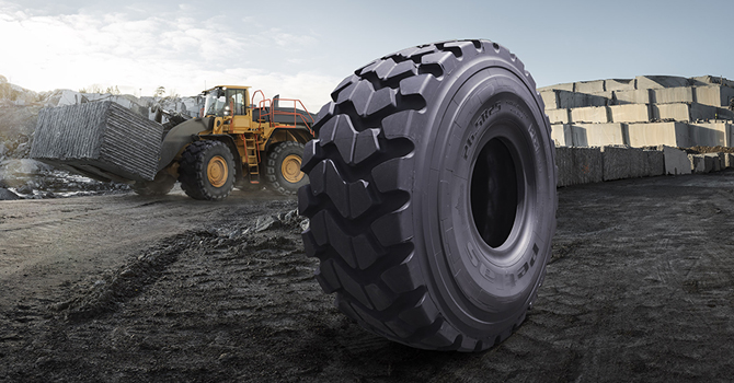 Yükleyiciler ve belden kırmalı kaya kamyonlarında kullanılmak üzere tasarlanmış her türlü hasara dirençli bir tam çelik radyal iş makinesi lastiğidir.