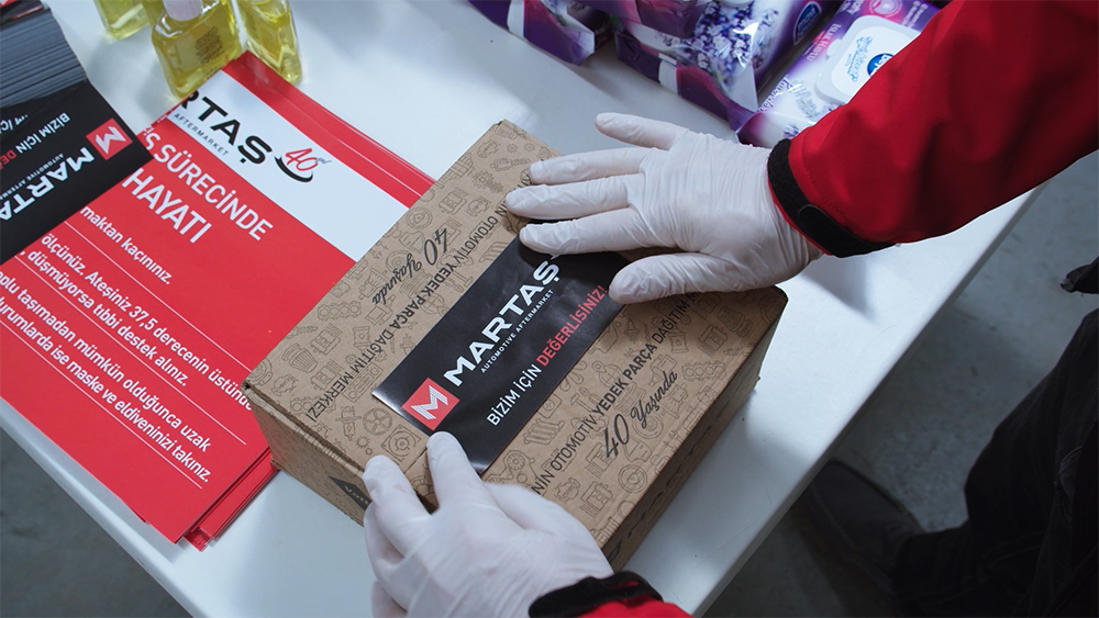 Corona Virüsle mücadelede en çok kullanılan hijyen ürünlerinden oluşan paket, Martaş Otomotiv’in İstanbul Avrupa Yakası’nda yeni açılan dağıtım merkezinde, hijyenik koşullar altında hazırlanmış olup Türkiye’nin dört bir yanındaki otomotiv yedek parça perakende noktası olan müşterilerine dağıtımı yapılmıştır.