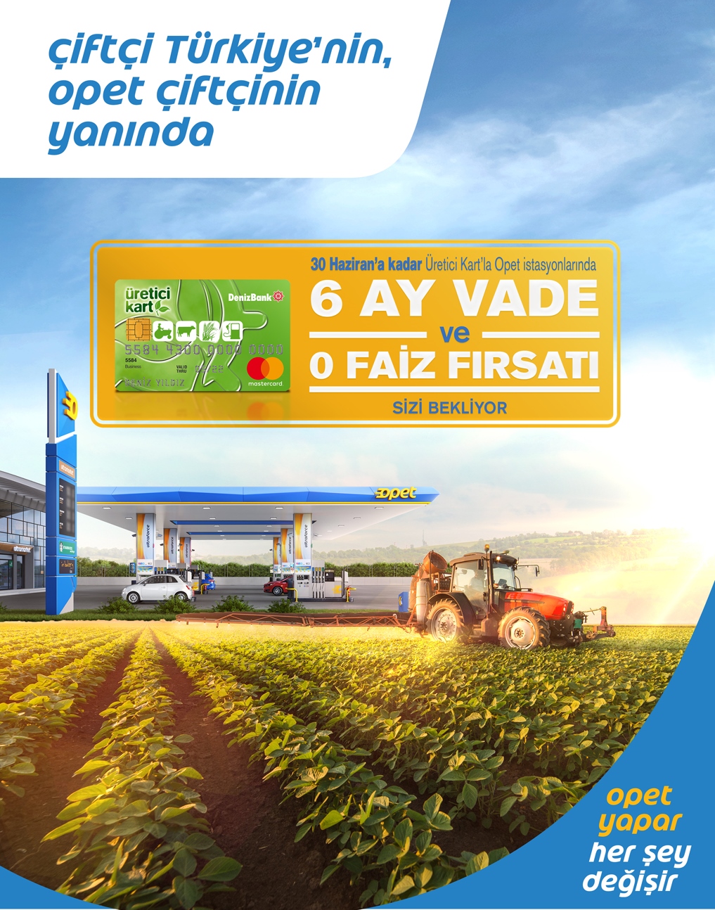 Bu kapsamda tarım bankacılığı alanında en yüksek pazar payına sahip banka olan Denizbank ile OPET yeni bir işbirliğine imza attı. OPET, 30 Haziran’a kadar Opet ve Sunpet istasyonlarından Üretici Kart ile akaryakıt alışverişi yapan çiftçilere faizsiz 6 ay vade imkanı sunuyor.