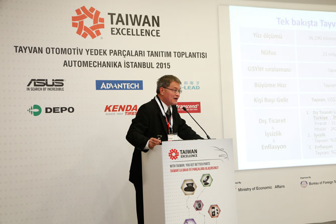 İstanbul Tayvan Dış Ticareti Geliştirme Merkezi Direktör Yardımcısı Michael Y.W Hsiao, lansman toplantısında yaptığı konuşmada, bir ada ülkesi olan Tayvan’ın, otomobil parçası sektörünün, farklı ürünlerden az sayıda üretme becerisi ve hatırı sayılır bir ürün geliştirme kapasitesine sahip olduğunun altını çizdi. Michael Y.W Hsiao, “Tayvan sanayisinin teknolojik gelişimi tüm dünya tarafından oldukça bilinir bir düzeye ulaştı. WEF’in 2014- 2015 Global Rekabet Raporuna göre, Tayvan, dünyada gözlemlenmiş 144 ekonomi içerisinde 14. Sıraya , Asya’da ise 4. Sıraya yerleşmiştir. Tayvan’ın sıralamadaki önemli artışa ek olarak, Tayvan, Ada Devletler Gelişme kategorisinde, dünyada 2. sırada yer aldı.” dedi.