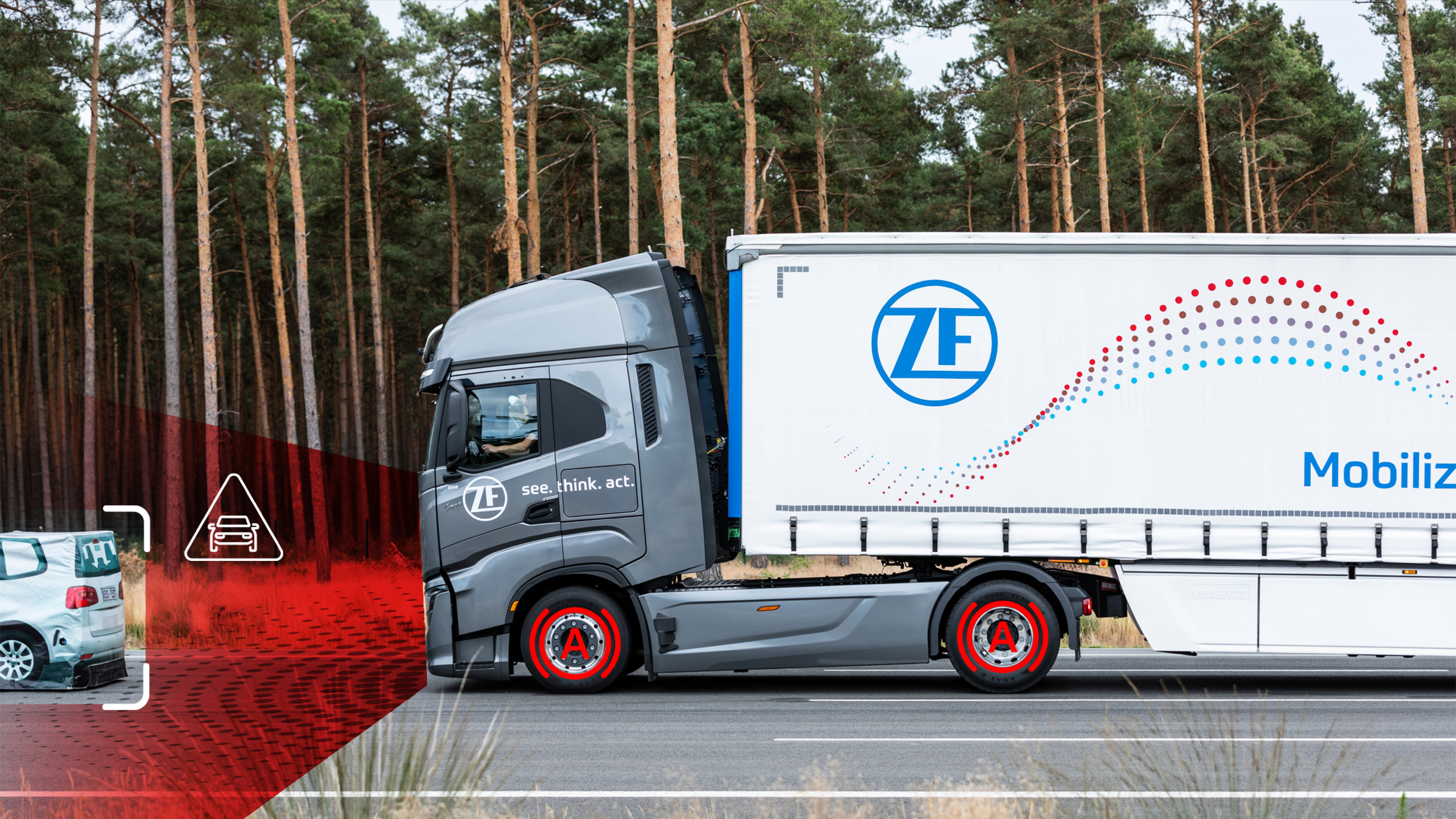ZF, teknolojinin ticari araçlar için daha ekonomik olmasını sağlamak için kapsamlı binek araç yeteneklerinden yararlanarak, güvenlik inovasyonu kamyonunu ve yarı treylerini birleşik teknolojileriyle donattı.