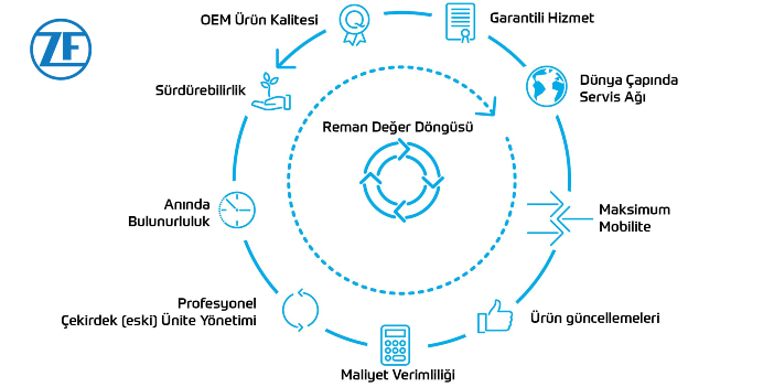 Re-man operasyonlarına dair bilgi veren Satış Sonrası Hizmetler Müdürü Alper Zoroğlu, “Yeniden üretim süreçlerinde, orijinal ekipman üreticisi olmanın doğrudan avantajına sahibiz. Üstün Alman kalite ölçütlerine göre standardize edilmiş üretim süreçlerimiz seri üretim ile aynıdır. ZF re-man ürünlerinin yenisi kadar güvenilir kalitede olduğunu garanti ediyoruz.” diyerek Sözlerine devam eden Zoroğlu “Her gün milyonlarca vatandaşımız toplu taşıma araçlarını kullanıyor. Bu araçların en sağlıklı şekilde faaliyet gösterebilmesi için bakımlarının ve parça değişimlerinin zamanında yapılması çok önemlidir. Biz sunduğumuz re-man ürünlerimizle, araç ve filo sahiplerinin sırtındaki maddi yükü azaltıyor ve tam müşteri memnuniyeti sağlıyoruz.” dedi.