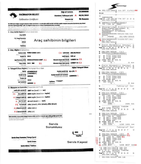 Kontrol | Manipülasyon, damgalar, veriler, tip onayı, belgeler, cihaz sürümleri , araç tescil tarihi, takograf tipi vs. |